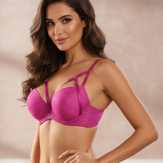 SAVE 25%Hot Pink Cage Strap Push-Up Bra Set